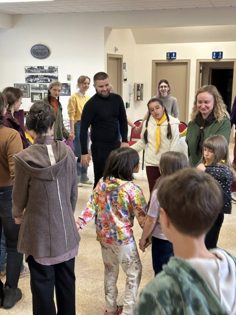 Висловлюємо велику подяку пані Ользі Грищенко за презентацію та знайомство пластунів з такими чудовими традиціями, обрядами та піснями! 💙💛 «Веселий день нам настав», «Воротарчик», «Жито, мамцю», «Вон, хлопці, вон», «Вяжітеся, огірочки» та «Мишка» – поки танцювали та слова вивчали – три пота зійшло! А посмішки з облич не сходять й досі! 😄😊🤗